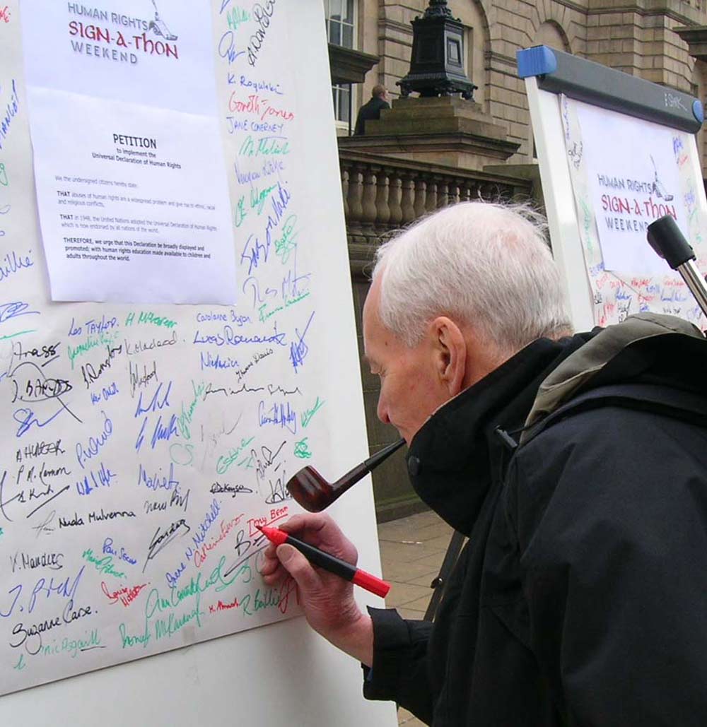 Η πρώτη Εκστρατεία Μαραθώνιου Υπογραφών για τα Ανθρώπινα Δικαιώματα, το Σαββατοκύριακο, μια λαϊκή δραστηριότητα για τη συλλογή υπογραφών σε μια έκκληση για την ευαισθητοποίηση και την εκπαίδευση στα ανθρώπινα δικαιώματα, είχε τεράστια επιτυχία. Η Νεολαία για τα Ανθρώπινα Δικαιώματα Διεθνώς μαζί με άλλες ομάδες και οργανισμούς από όλο τον κόσμο, με παρόμοιο σκοπό, μάζεψαν υπογραφές για την έκκλησή τους ώστε να γίνει η εκπαίδευση στα ανθρώπινα δικαιώματα υποχρεωτική, για όλα τα παιδιά. Στην Κοπεγχάγη, στη Δανία, στήθηκε, στην κεντρική πλατεία, μια οθόνη 35 τετραγωνικών μέτρων προωθώντας την Εκστρατεία Μαραθώνιου Υπογραφών, ενώ οι 200 εθελοντές συγκέντρωσαν 10.000 υπογραφές.