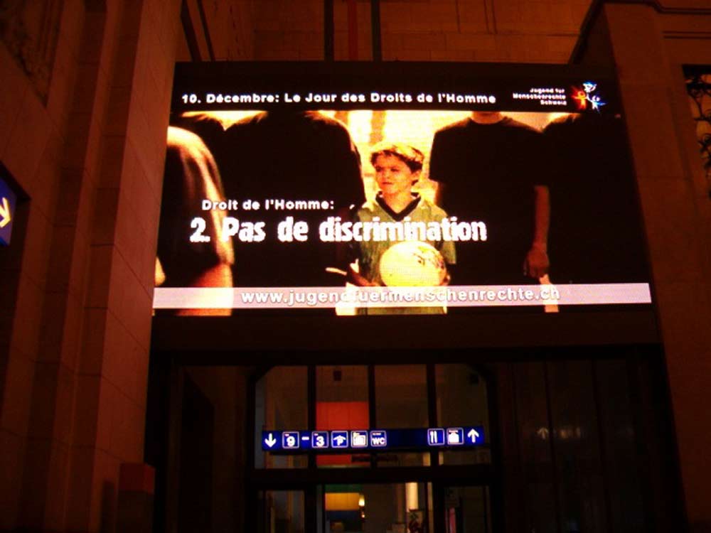 A CNN transmitiu dois dos Anúncios de Serviço Público da YHRI, cada um ilustrando um dos 30 Artigos da Declaração Universal dos Direitos do Homem (DUDH): “Somos Todos Iguais Perante a Lei” e “Liberdade de Pensamento”.Os espectadores que viram um dos Anúncios de Serviço Público na CNN Internacional foram direcionados para o site, www.youthforhumanrights.org onde podem fazer download dos trinta Anúncios de Serviço Público e obter materiais educativos eficazes para ensinar os Direitos Humanos na sua área do mundo, onde quer que esta seja.